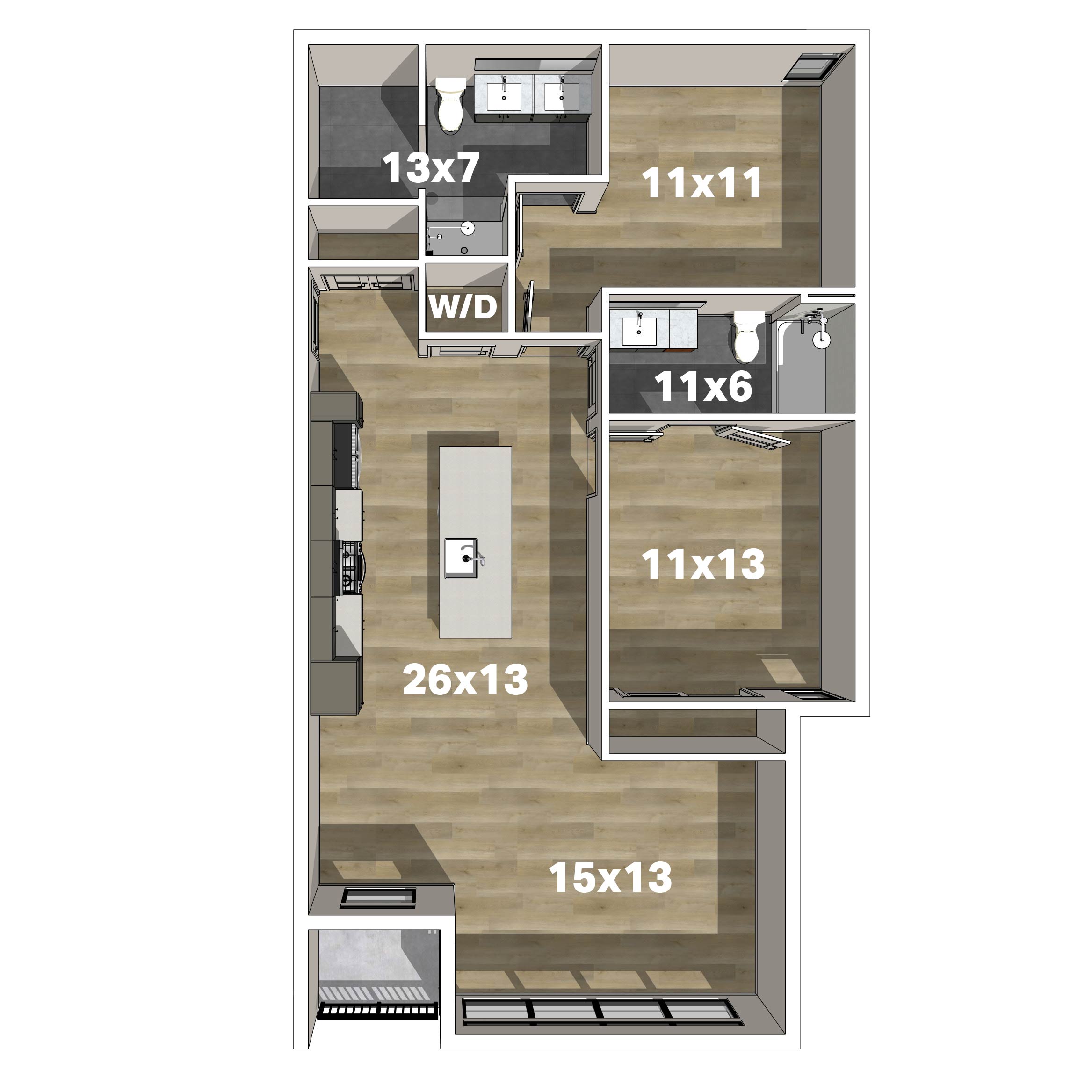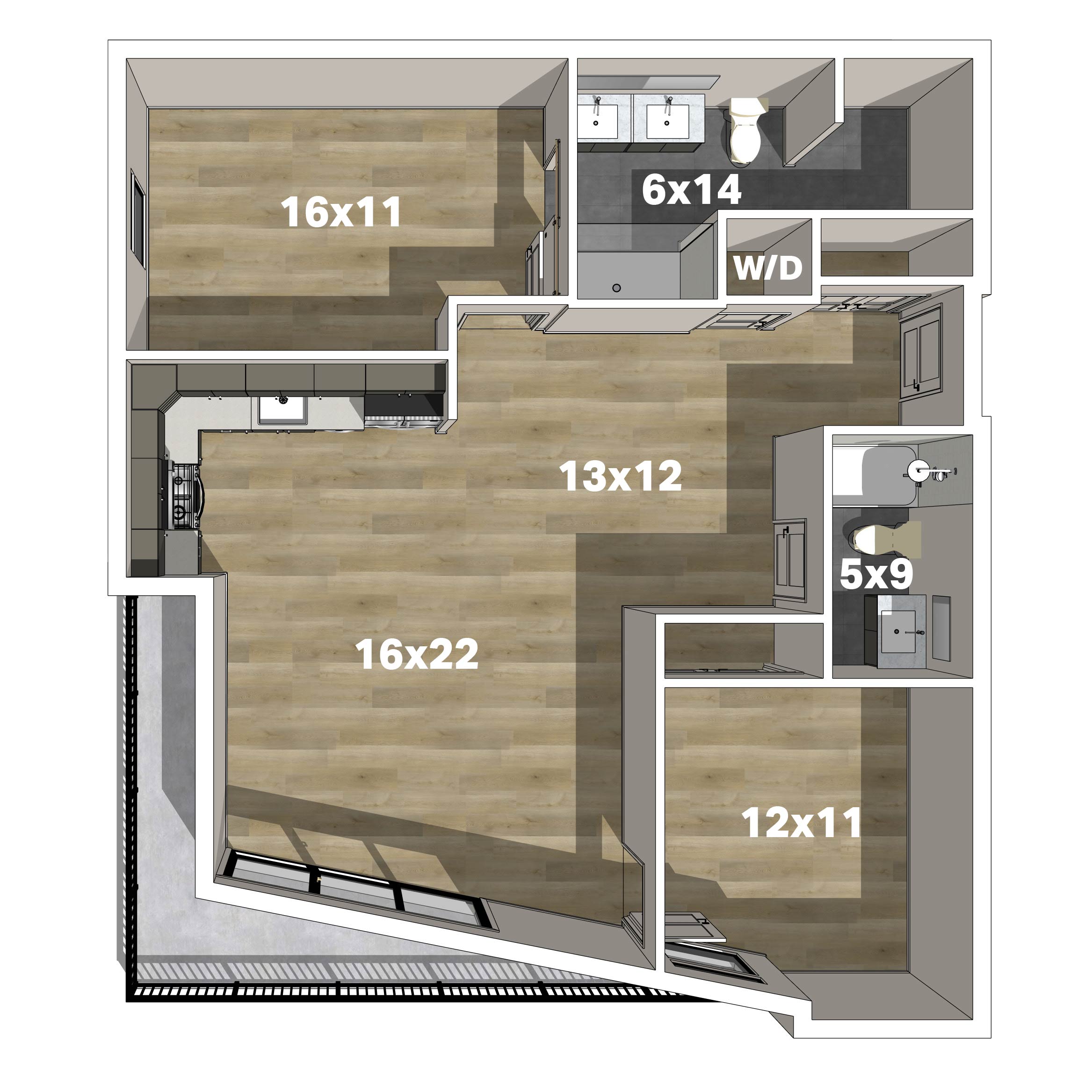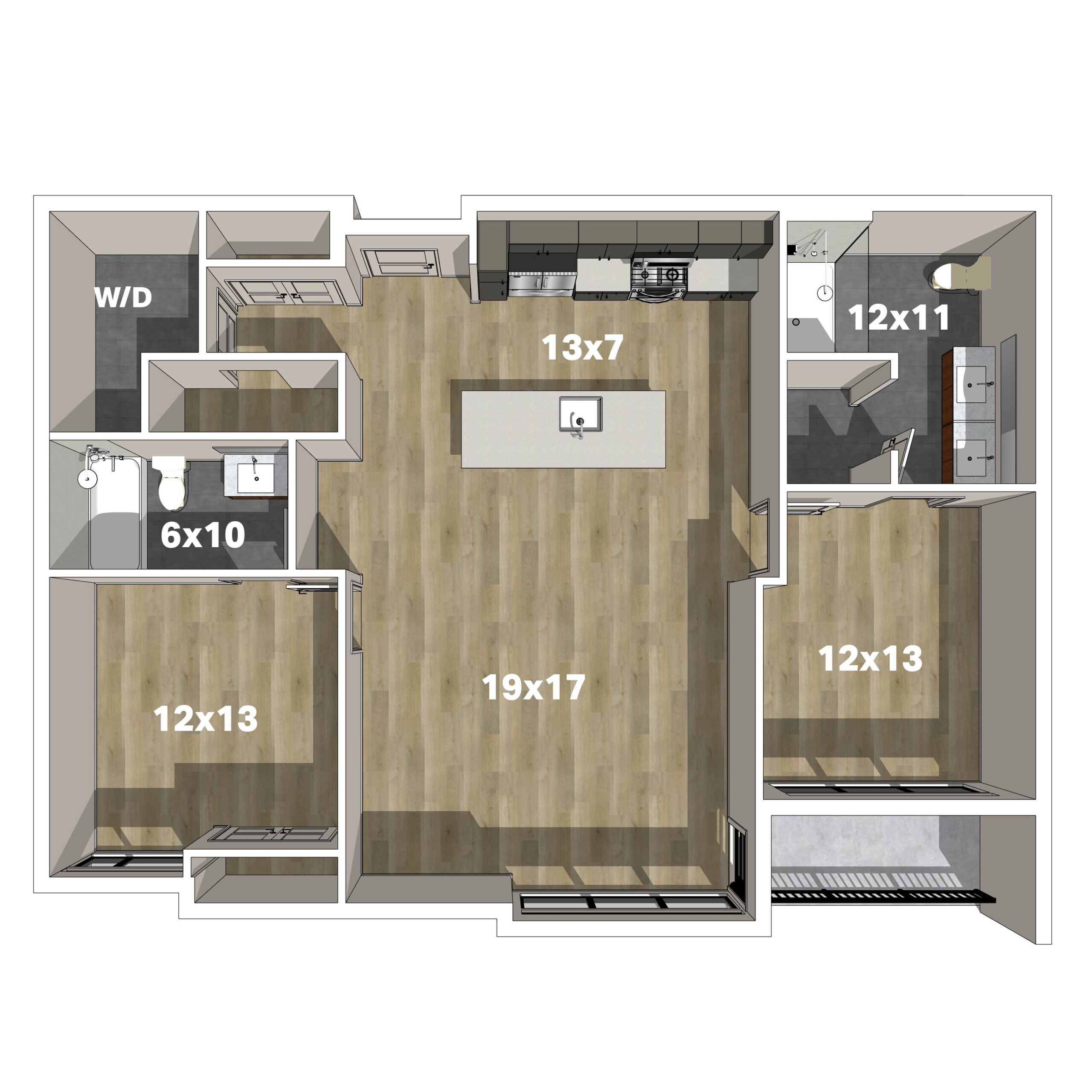 - Studio, 1-,2- and 3-bedroom floor plans